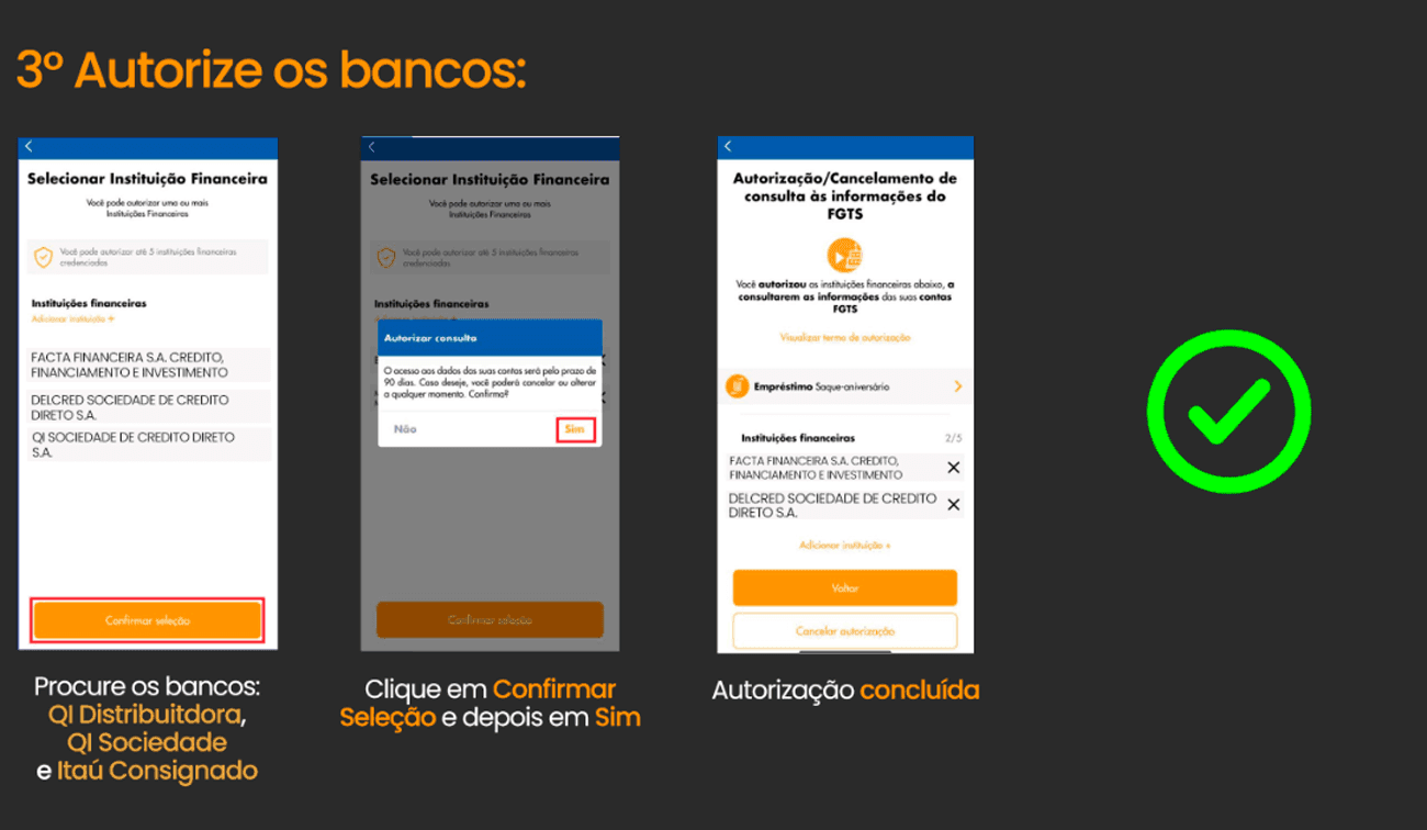 • Parcelas anuais pagas diretamente da conta vinculada FGTS no dia da disponibilização pela sistemática do Saque Aniversário.